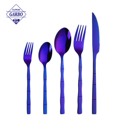 The bamboo-designed blue electroplated stainless steel cutlery perfectly combines natural inspiration with modern craftsmanship, standing out from the crowd of cookie-cutter tableware.