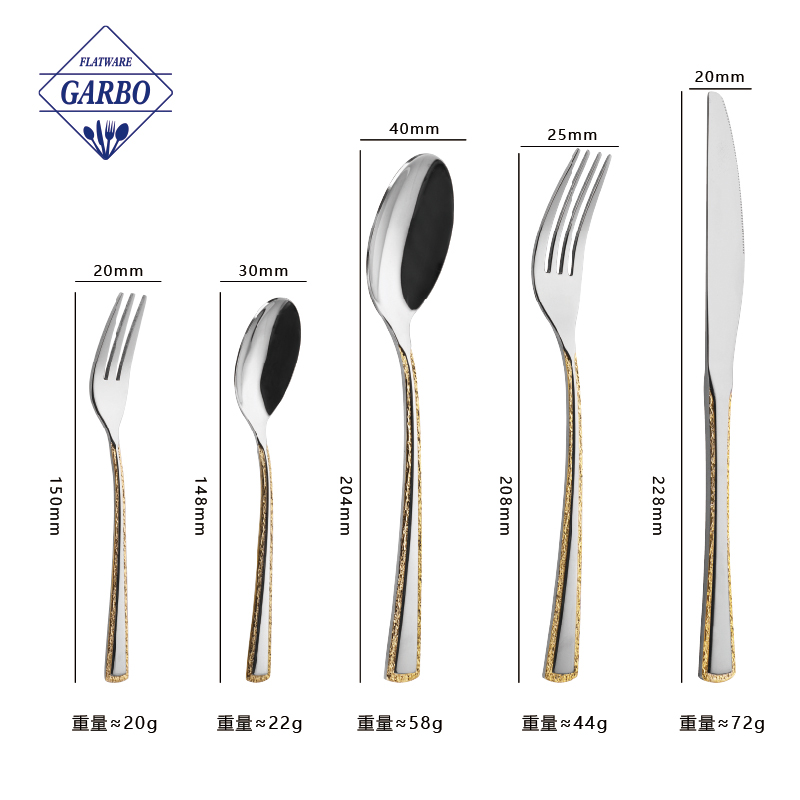 If you are looking for popular flatware products suitable for the Middle Eastern market, aiming for wholesale volume while also wanting products with a more appealing appearance, then Garbo's 201 golden cutlery series is a mature and stable choice.