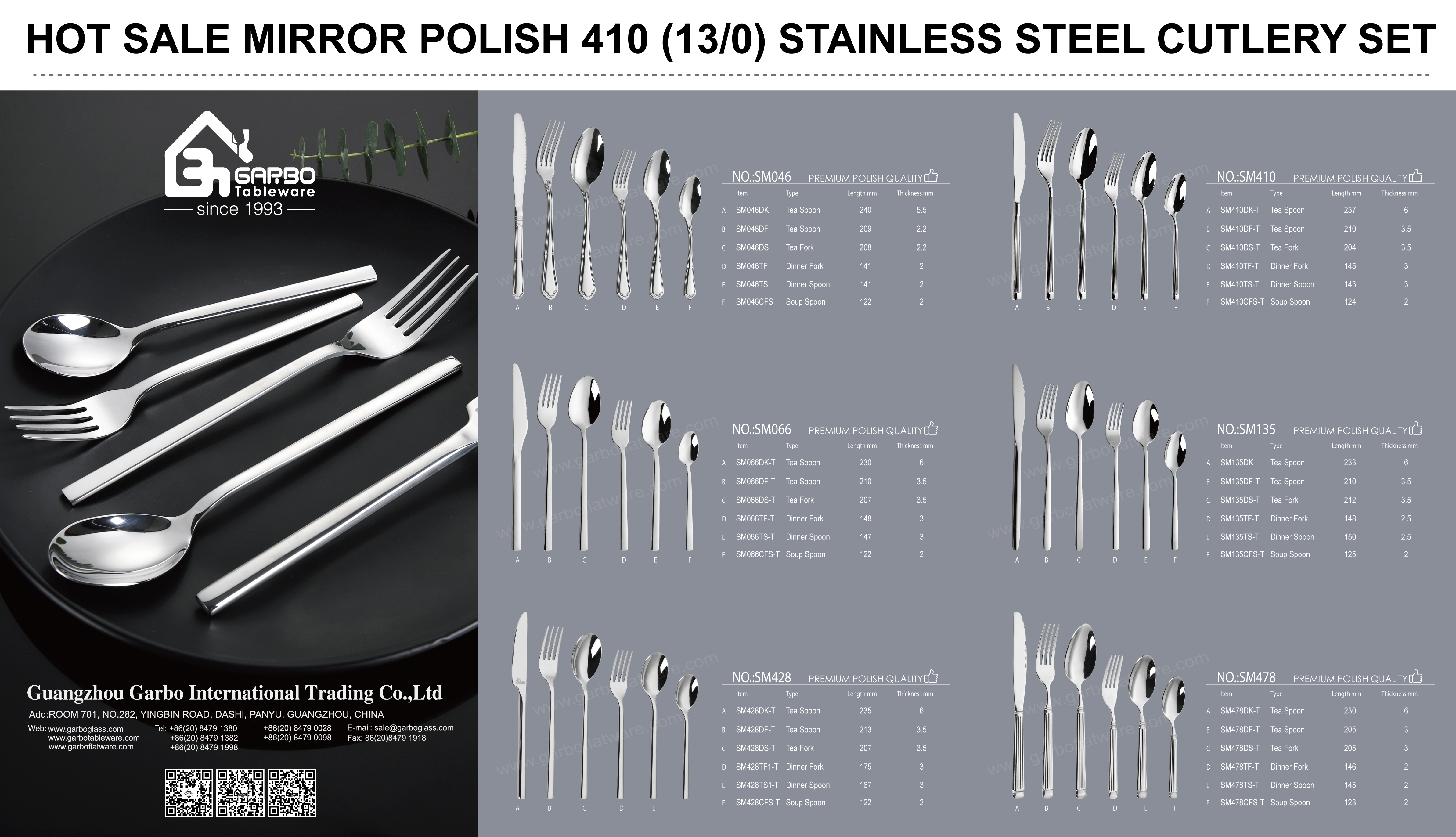 As a manufacturer working in stainless steel cutlery over 15 years, Garbo never stop and work to find new technology and new design to inprove ourselve. This 410 stainless steel cutlery is one of our create, so clients need the thinner design, we make it. And we keep the quality and show the skilled craftsmanship of our Jieyang factory. And we provide the convenient sample viewing at our Guangzhou showroom. Welcome all the friends to visit our cutlery,no matter where are you from, we are alway here. We not only provide products, but also global supply chain support and market adaptation solutions, ensuring that every partner receives stable, reliable, and cost-effective flatware solutions.