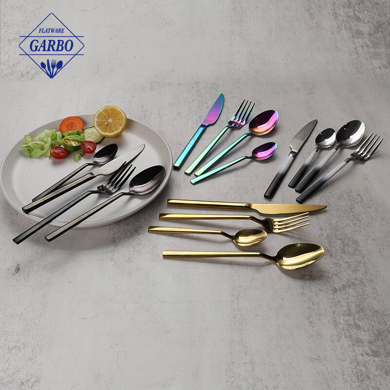 Stainless steel knife and fork is one of the most frequently used cutlery in daily life. Everyone has different aesthetic and preferences for the design style of knife and fork. For European countries and regions, people usually prefer fixed styles and classic simple patterns, while in the Middle East, people are especially fond of water-plated and baroque knives and forks. Therefore, Garbo suppliers design different post-processed knives and forks according to the styles and preferences of different regions. Usually the knife and fork after processing titanium plating, spray painting, laser, sand blasting.