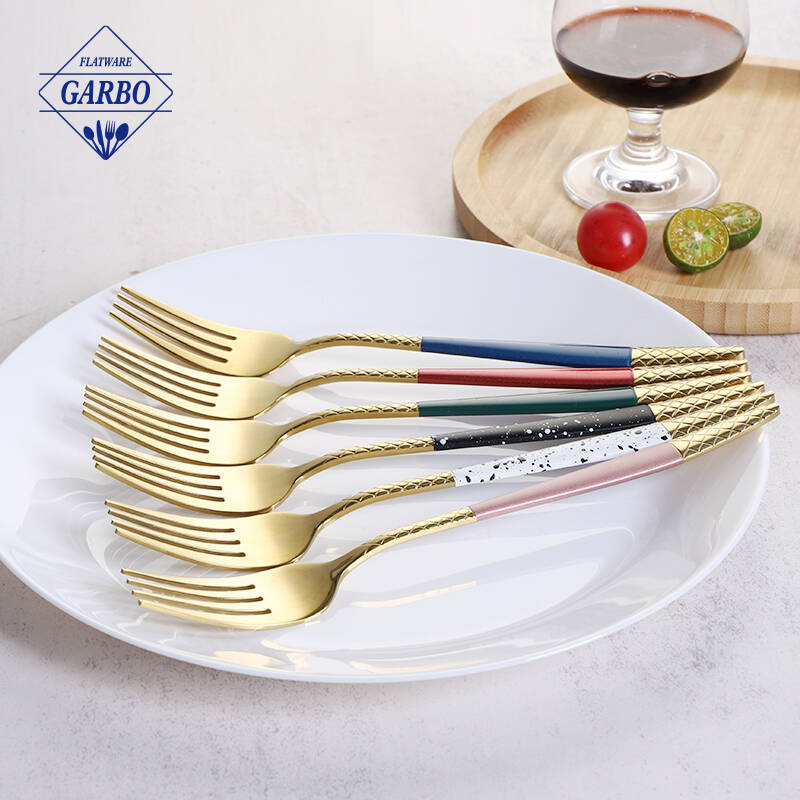 Different customers have different tableware needs and aesthetics. For example, European and American customers like simple and advanced silver knife and fork styles, Middle East customers like luxurious and elegant golden knife and fork styles, Southeast Asian customers like cute and novel knife and fork styles, etc. Therefore, in order to meet the According to the needs of customers in different markets, Garbo also provides different post-processing methods for knives and forks. For example, we can make stencil logos, laser logos or decals with different styles for you. At the same time, for silver cutlery, we can also do different post-processing methods for you to meet your market needs, such as PVD, color spraying, electroplating, etc. can be customized for you, this is the second advantage of buying tableware in Jiabao .