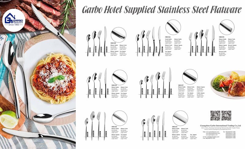 Garbo created new and latest stainless steel flatware meets the requirements of five-star hotels for tableware configuration. The design is simple yet elegant. The quality must be the use of the best raw materials and the best polishing process. Just from the handle, you can see the meticulous requirements of Garbo's details! Don't look at all silver stainless steel, Garbo can accept different color customization, such as spraying colors or titanium colors.