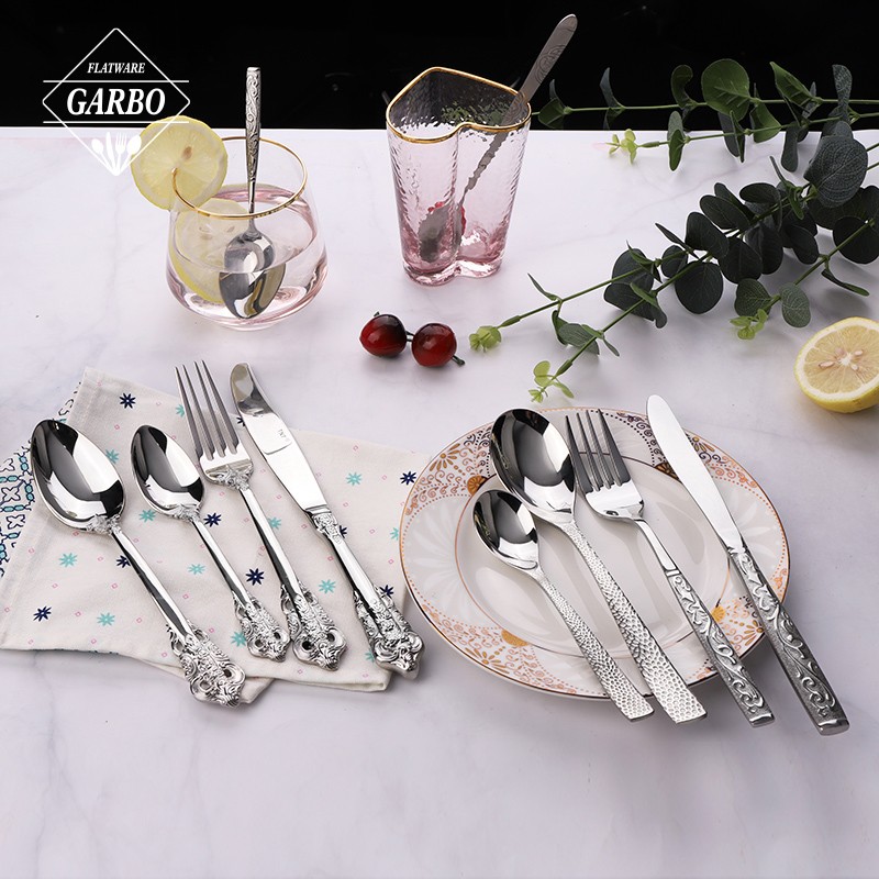 Special design dot engraved silver handle, It's newly released items in the markets. Made from the highest quality of 18-10 stainless steel, also called 304 grade, which makes the flatware set highly durable and extremely rust resistant